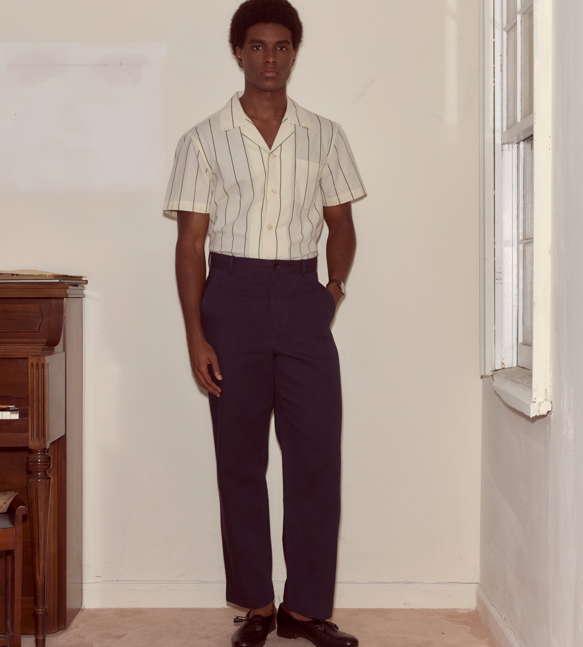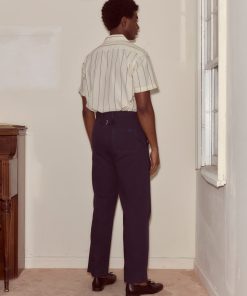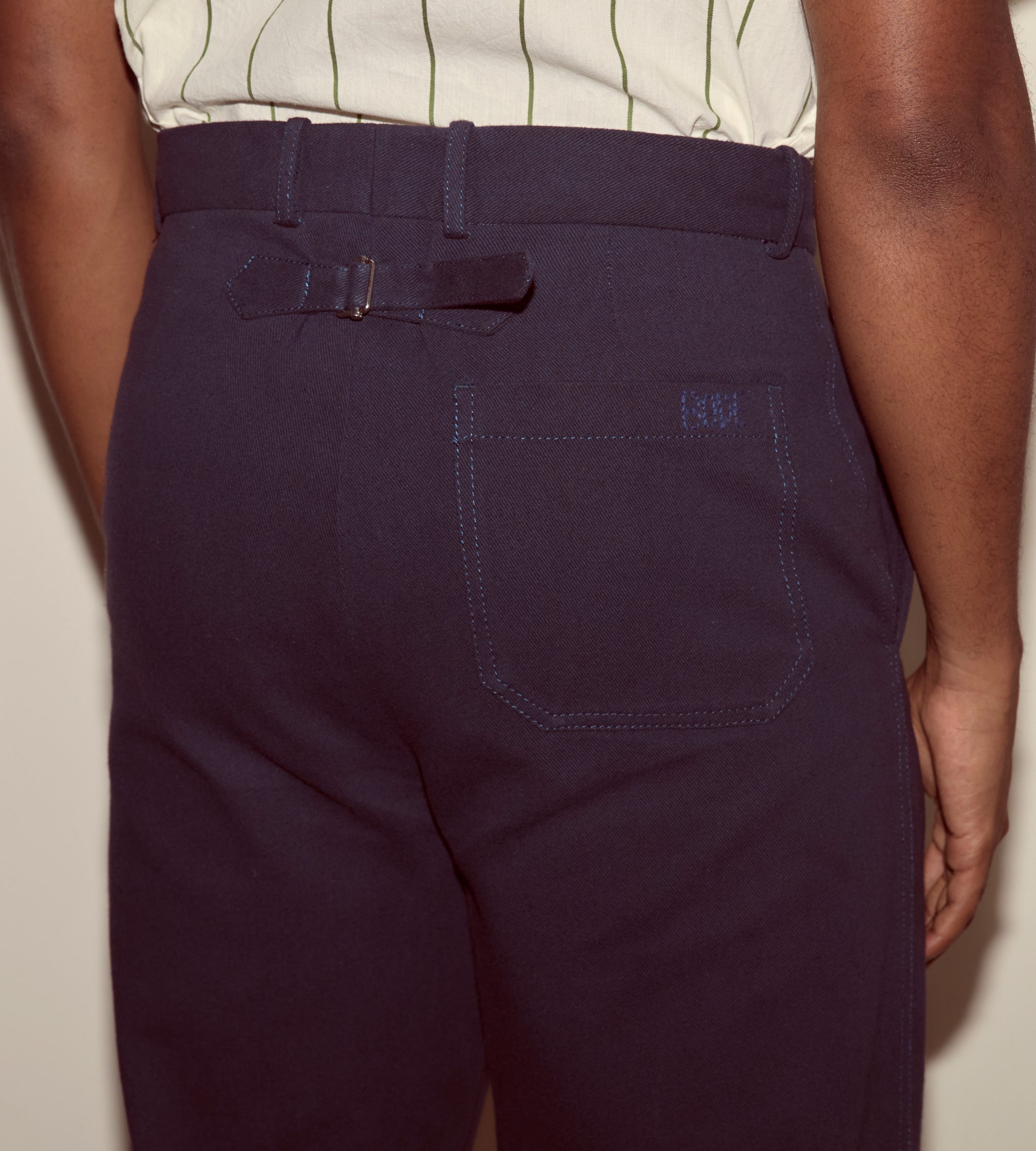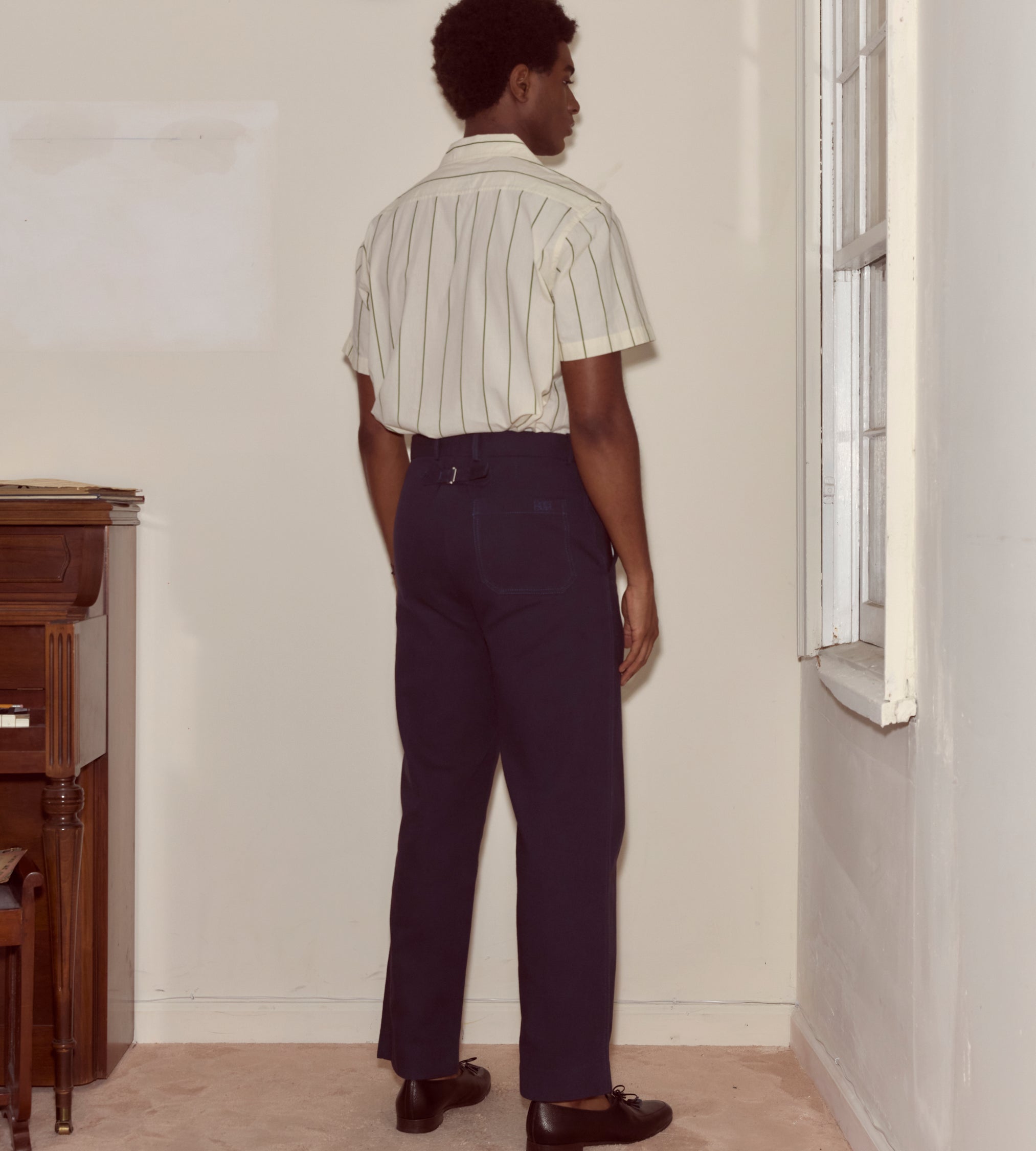 These trousers are inspired by French workwear trousers, circa 1940s. We reproduced the high-rise, straight-leg silhouette for this style. The trousers are made of heavyweight cotton twill.