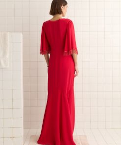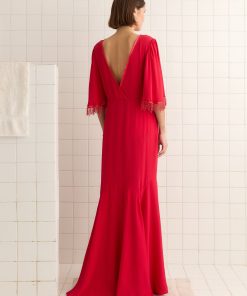 This dress is inspired by an afternoon dress from the 1930s with a distinctive godet skirt. We reproduced the silhouette in textured crepe with ribbonwork and beading around the collar and sleeves.
