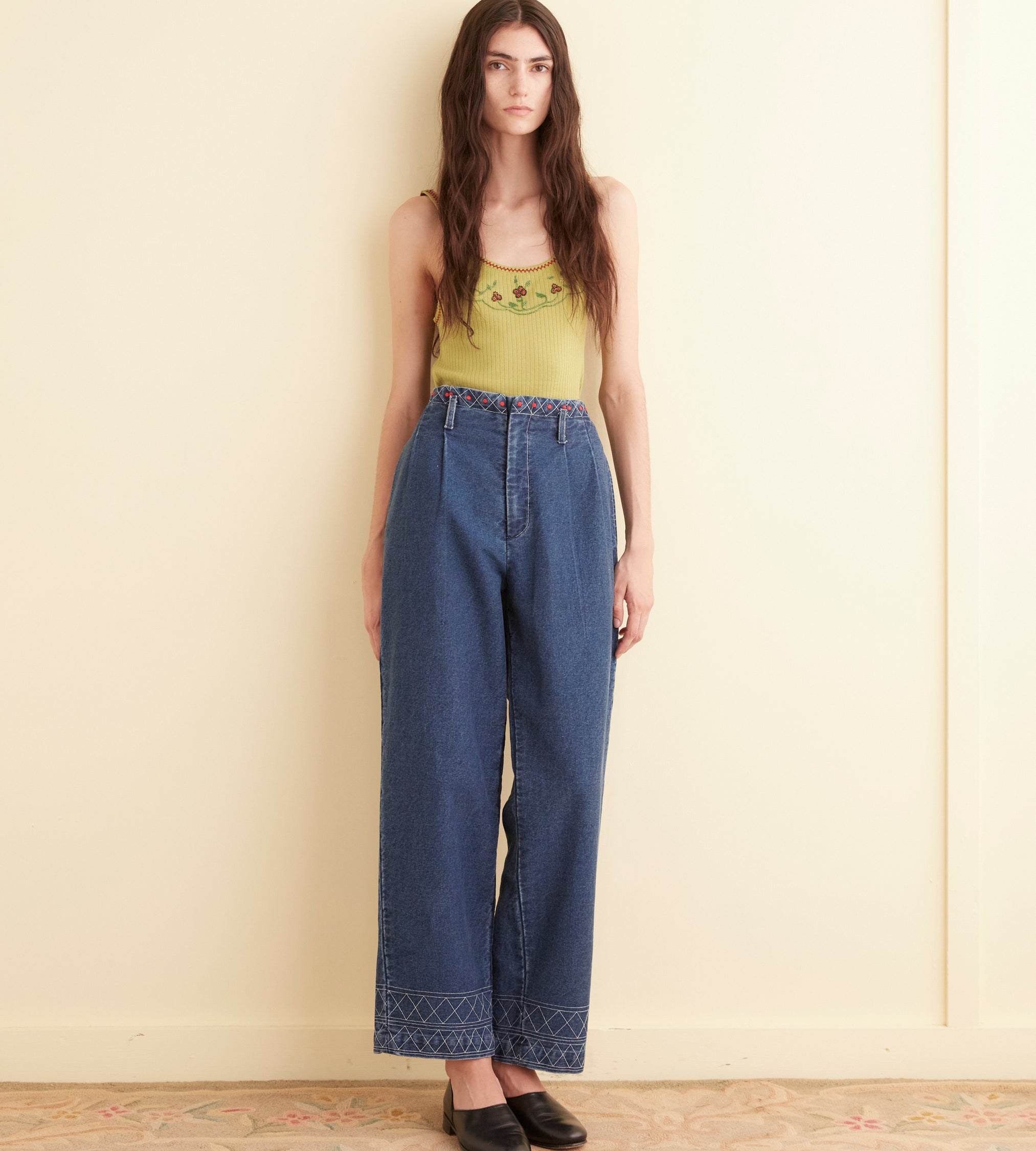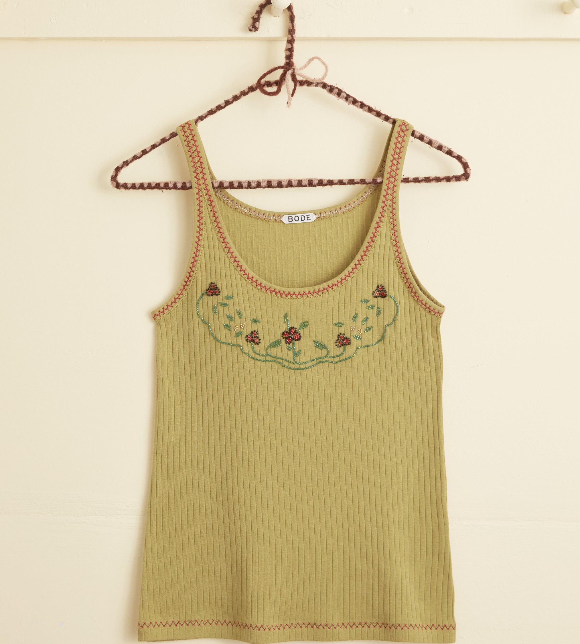 BODE Women’s Ready To Wear Beaded Dahlia Tank | Green