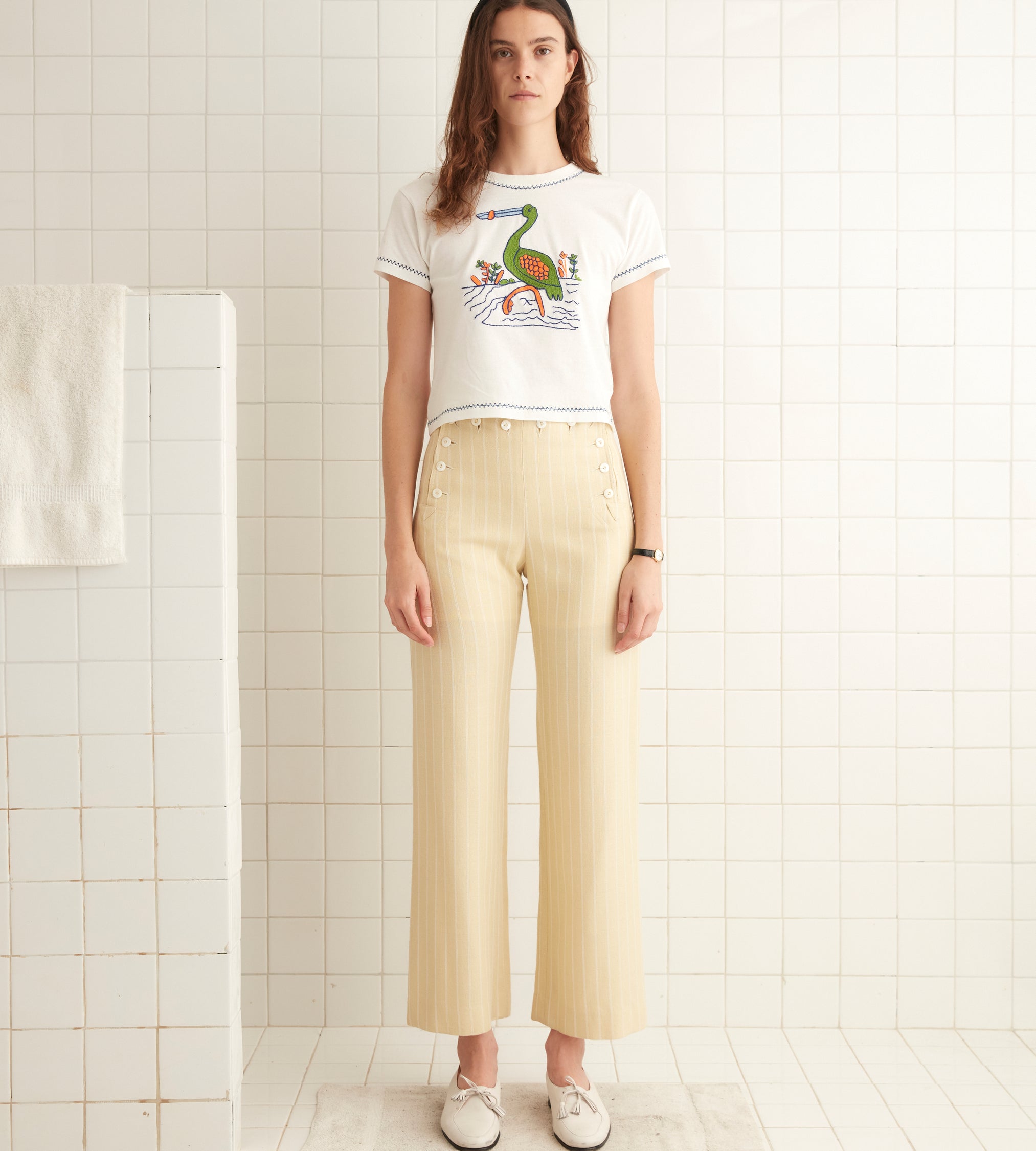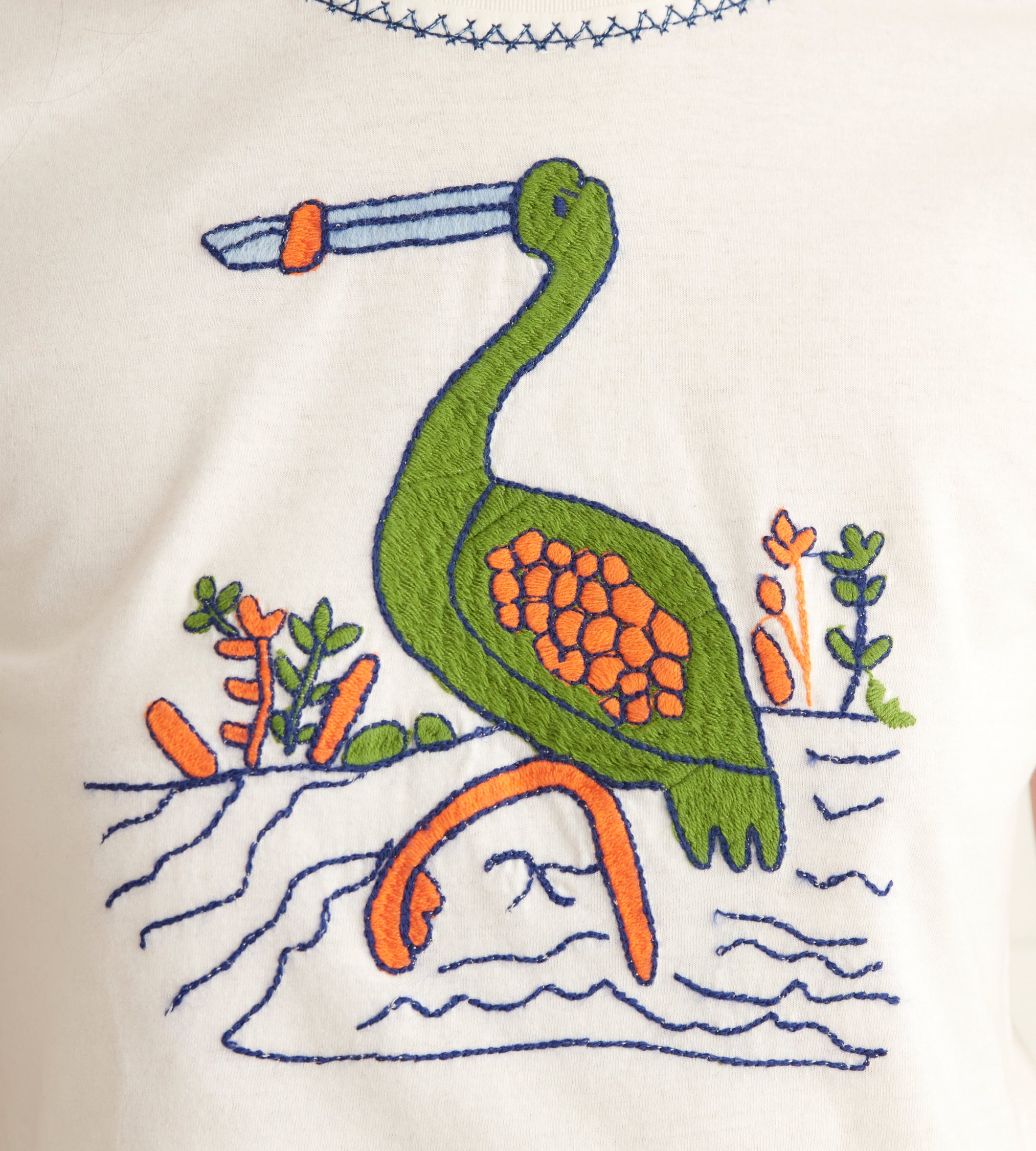 BODE Women’s Ready To Wear Embroidered Heron Tee | Cream