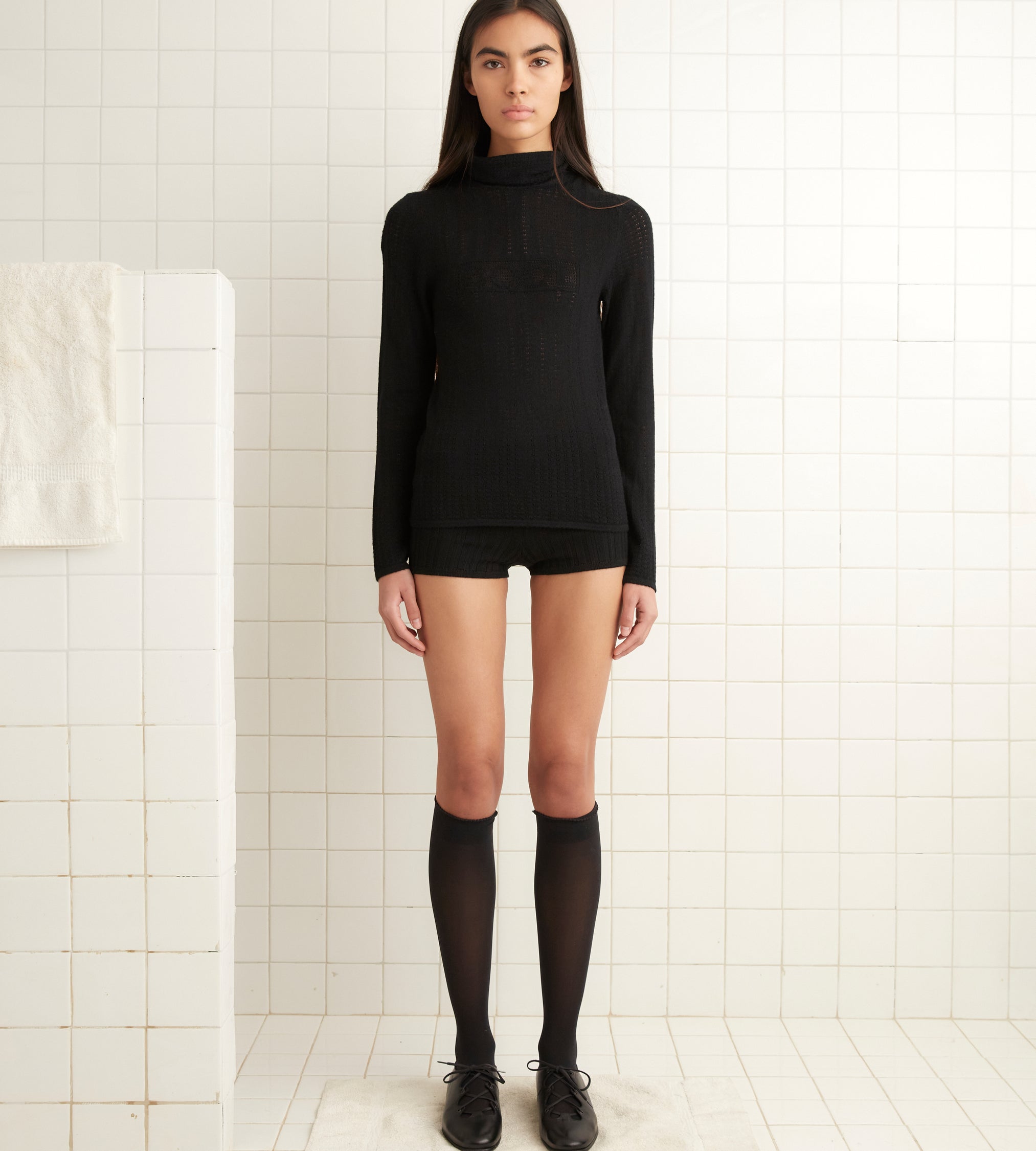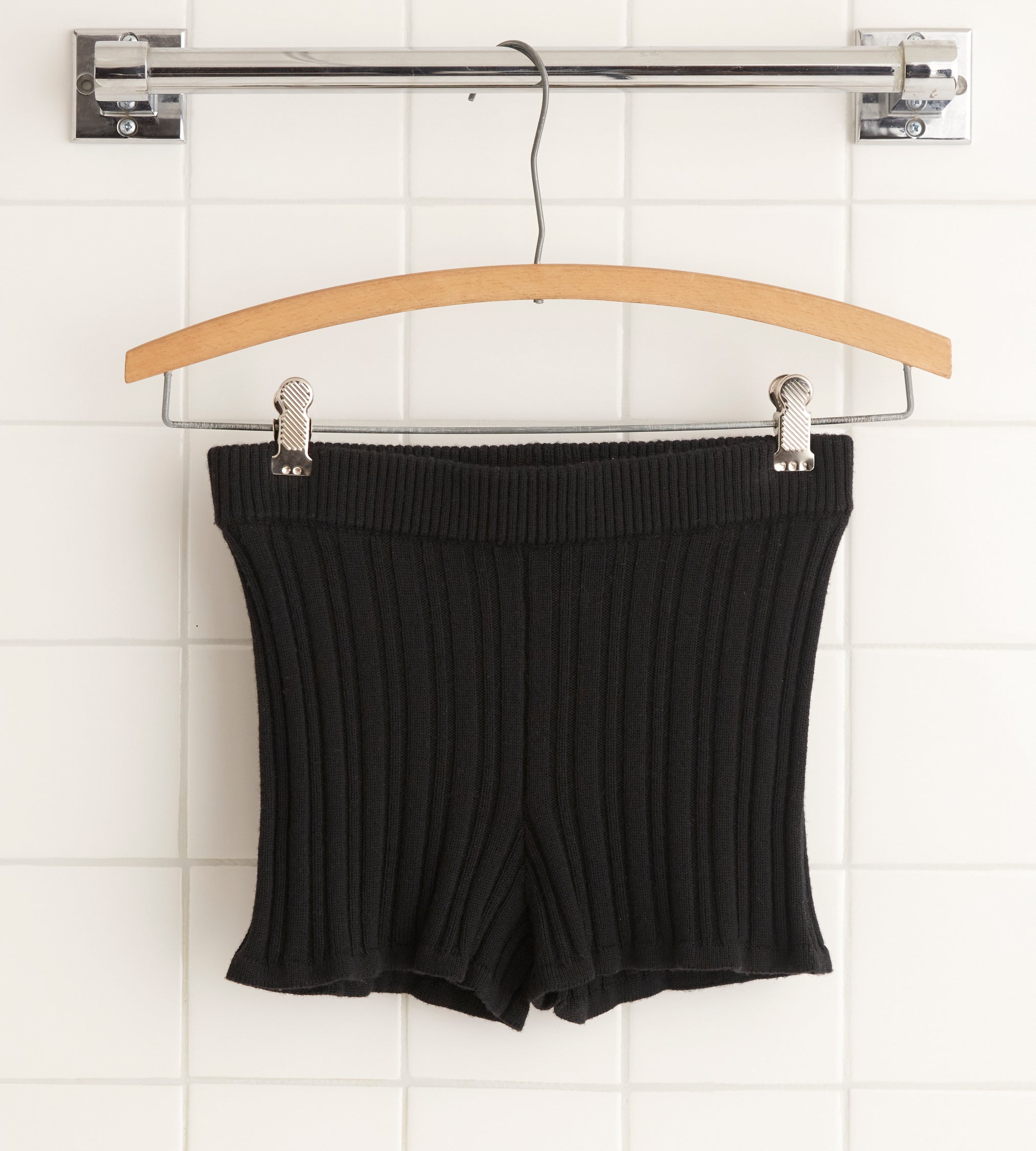 This style is inspired by knit shorts from the late 20th century. We reproduced the silhouette in soft merino wool with wide ribbing.