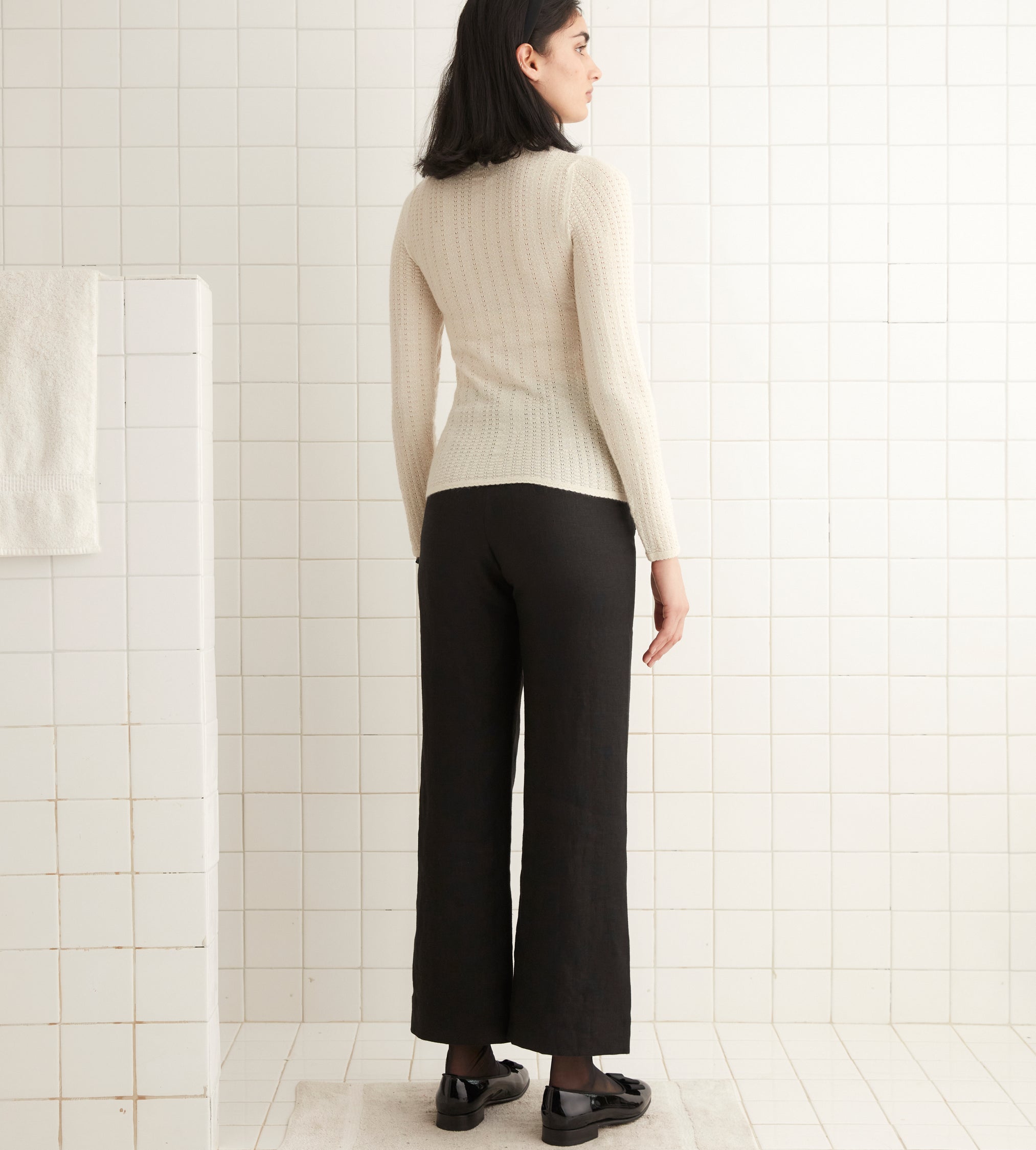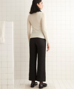 This pullover is inspired by a vintage turtleneck. We reproduced the pointelle knit pattern in a soft, silky yarn, adding “Bode” across the chest.