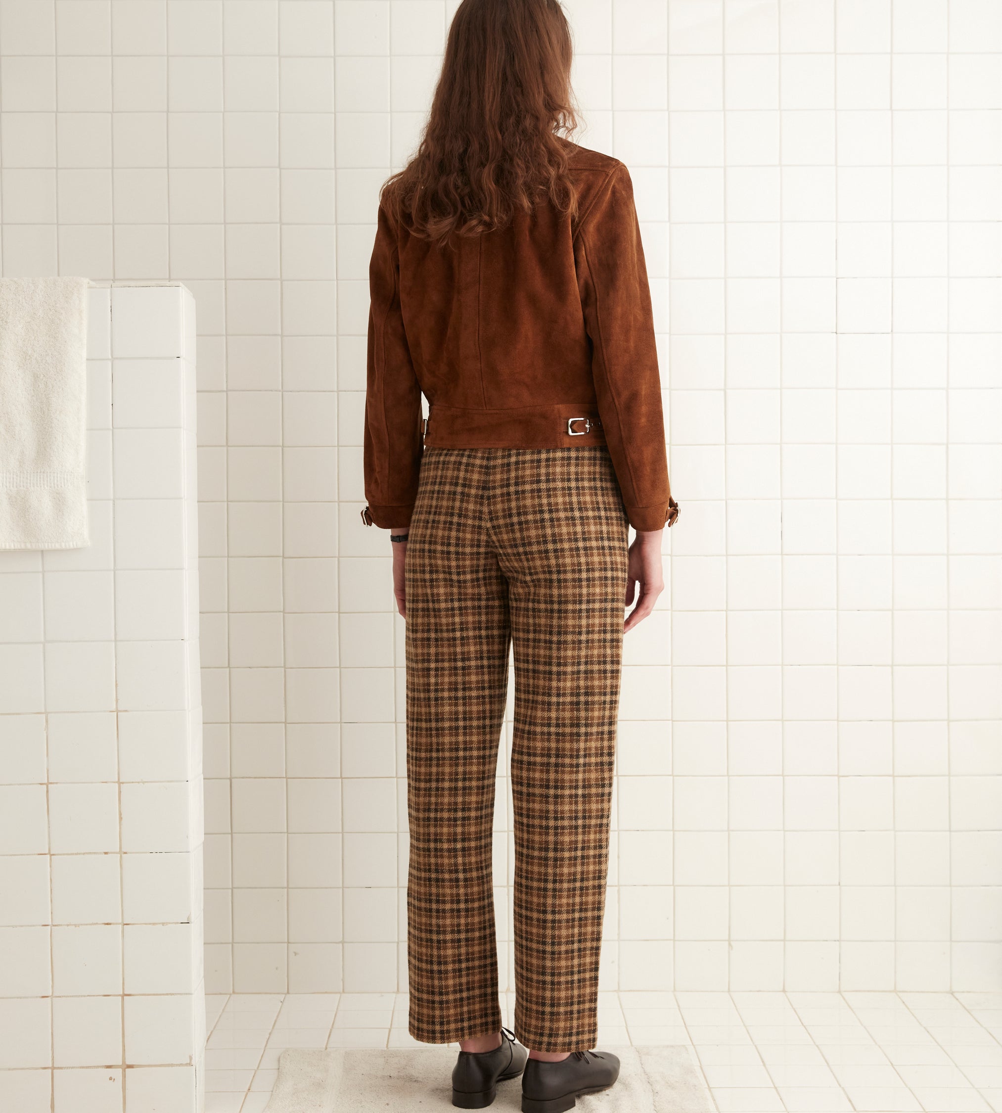 This jacket is inspired by a women’s leather jacket, c.1935, likely worn for skiing or hunting. We reproduced the silhouette of the original jacket in a dark brown suede.